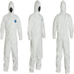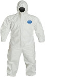 Long zipper easier donning and doffing, extends to chin for complete coverage. Elastic waist to offer better comfort and to position the garment. Attached respirator fit hood on this garment. Elastic wrists keep out dirt; Tyvek material is dirt repellent. Reinforced in high stress areas for a greater range of motion to stretch.